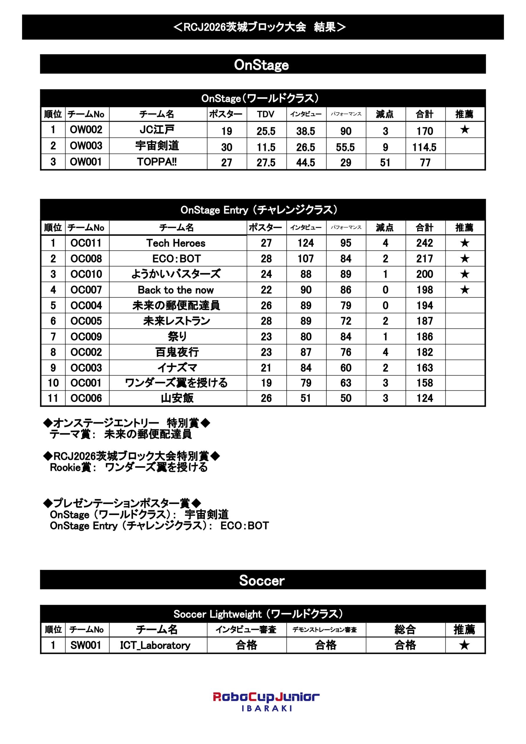 ★RCJ2026茨城ブロック大会 結果